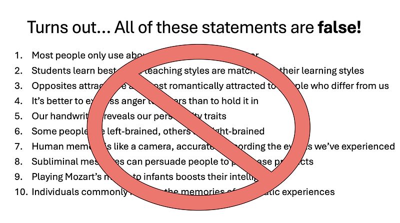 Students are surprised to learn that many of the psychology "findings" they have heard before are in fact myths!