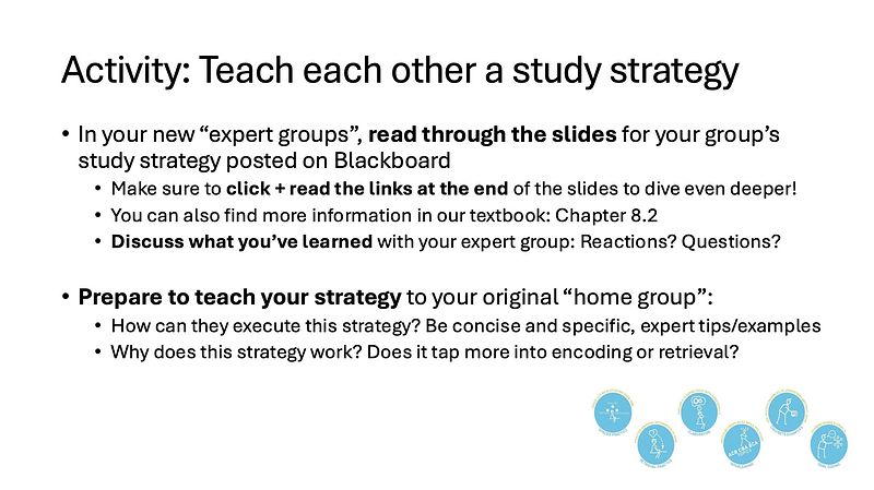 Students teach each other evidence-based study strategies in a jigsaw activity during our unit on Learning and Memory.
