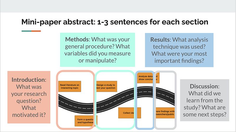 A diagram showing how to use the scientific method as a template for writing an abstract