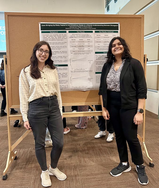 My mentees Maheshwari (pictured) and Sierra presented their original research projects in a poster symposium as part of the Psychology Undergraduate Mentorship Program (PUMP) at UT Austin